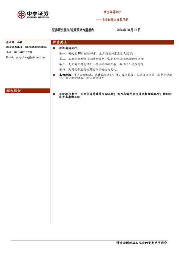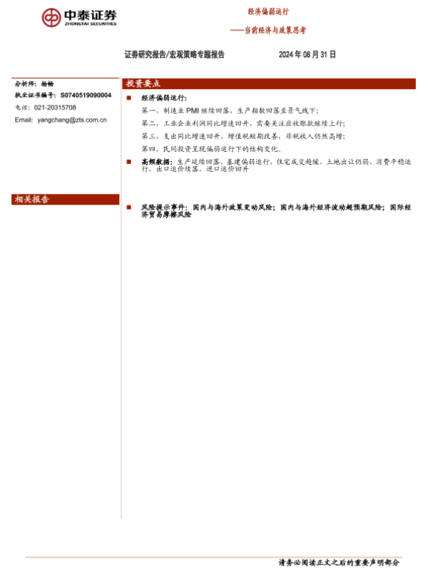 【中泰证券】【20240831】当前经济与政策思考:经济偏弱运行-17页