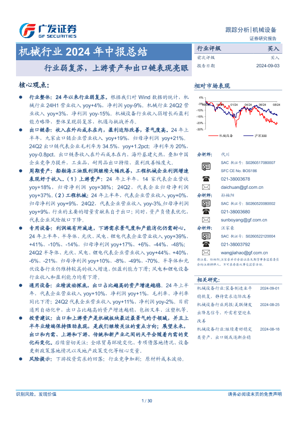 【广发证券】【20240903】机械行业2024年中报总结:行业弱复苏,上游资产和出口链表现亮眼-30页