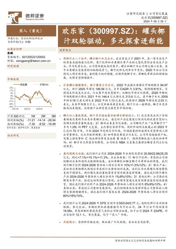 【德邦证券】【20240905】欢乐家(300997)罐头椰汁双轮驱动,多元探索迸新能-18页