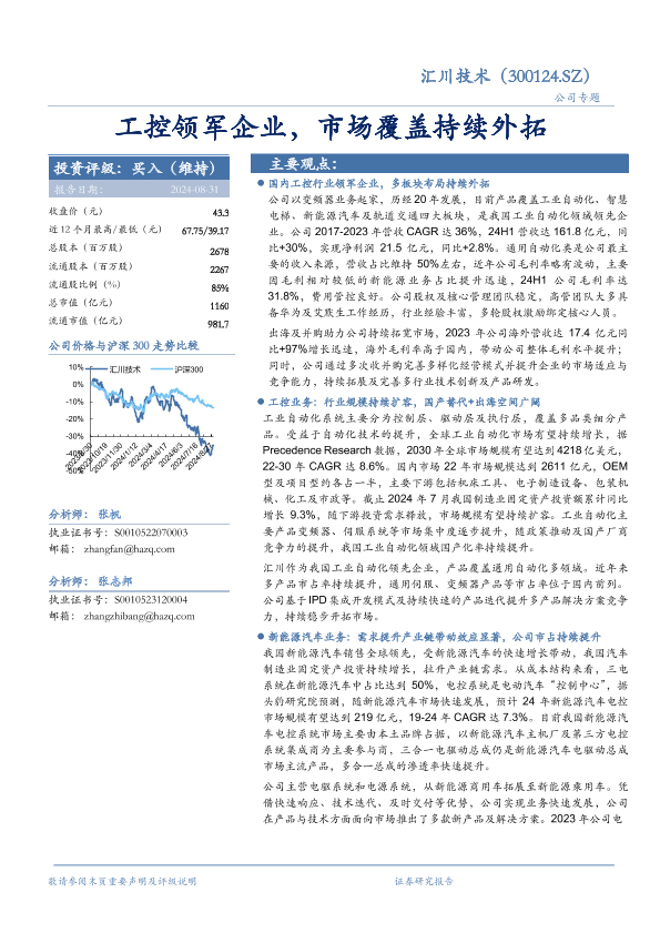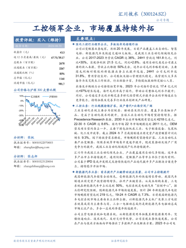 【华安证券】【20240831】汇川技术(300124)工控领军企业,市场覆盖持续外拓-45页