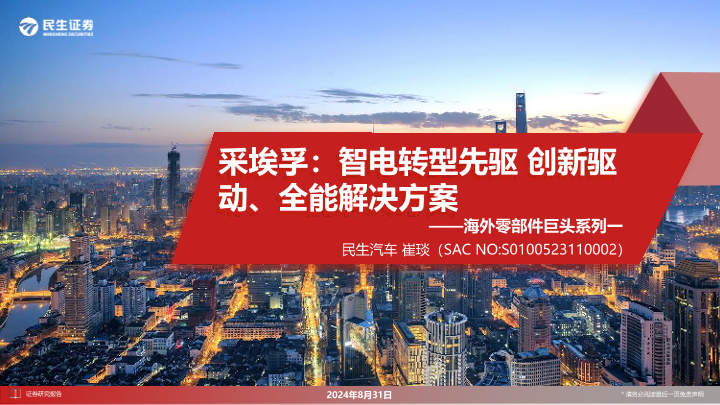 【民生证券】【20240831】汽车行业海外零部件巨头系列一:采埃孚-智电转型先驱,创新驱动、全能解决方案-112页
