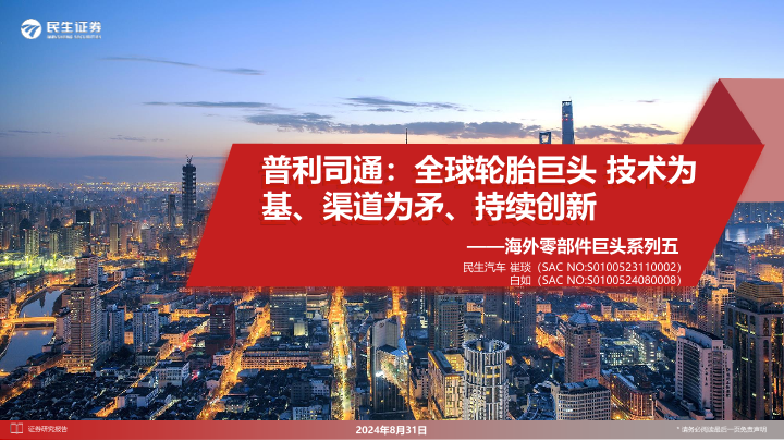 【民生证券】【20240831】汽车行业海外零部件巨头系列五:普利司通,全球轮胎巨头,技术为基、渠道为矛、持续创新-94页