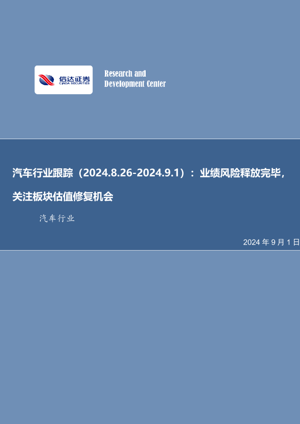 【信达证券】【20240901】汽车行业跟踪(2024.8.26-2024.9.1):业绩风险释放完毕,关注板块估值修复机会-20页