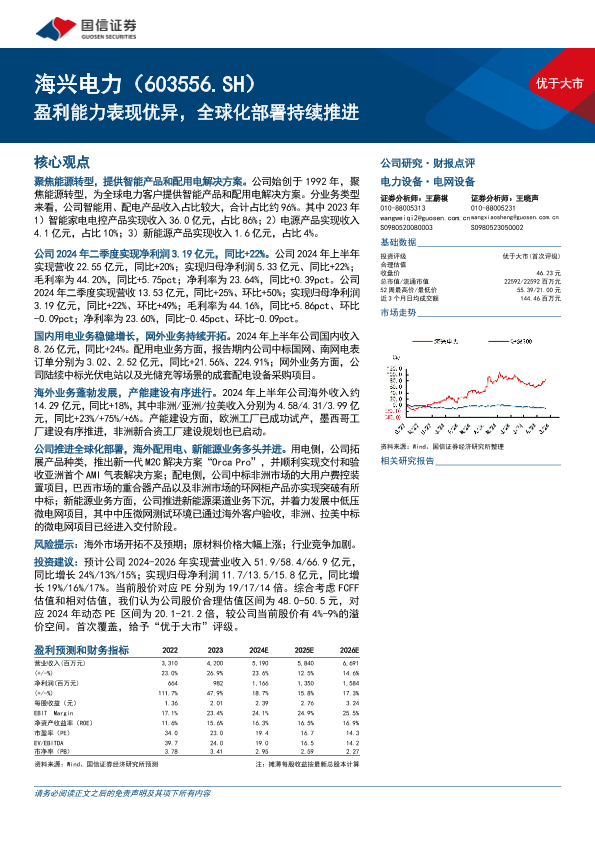 【国信证券】【20240902】海兴电力(603556)盈利能力表现优异,全球化部署持续推进-20页