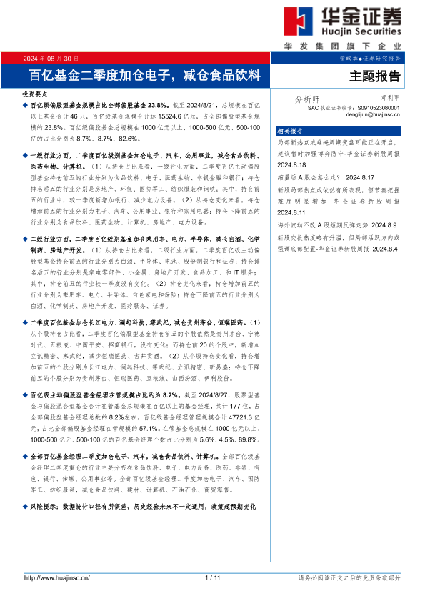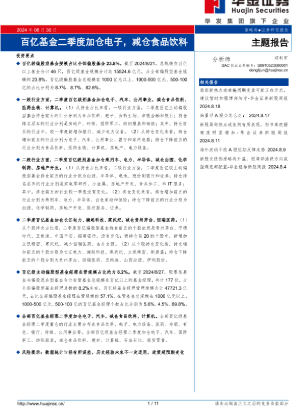 【华金证券】【20240830】百亿基金二季度加仓电子,减仓食品饮料-11页