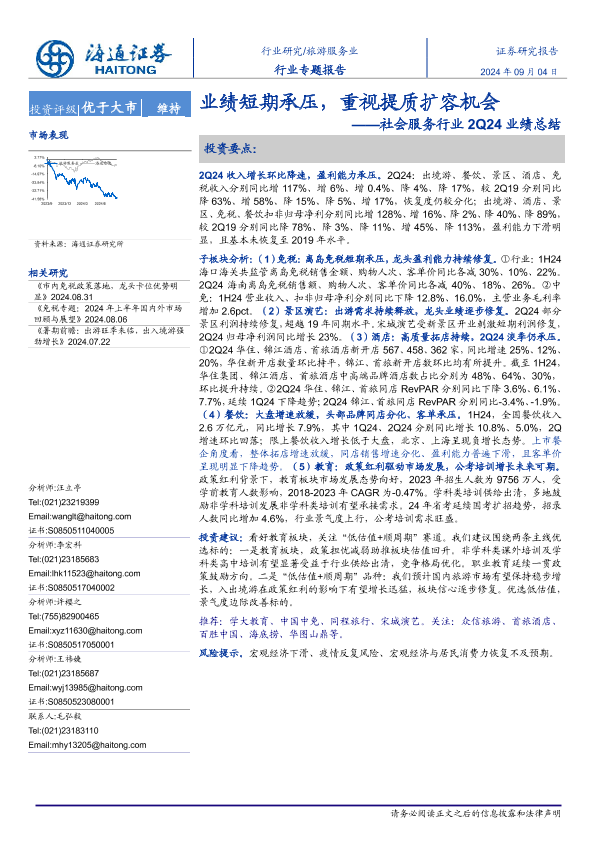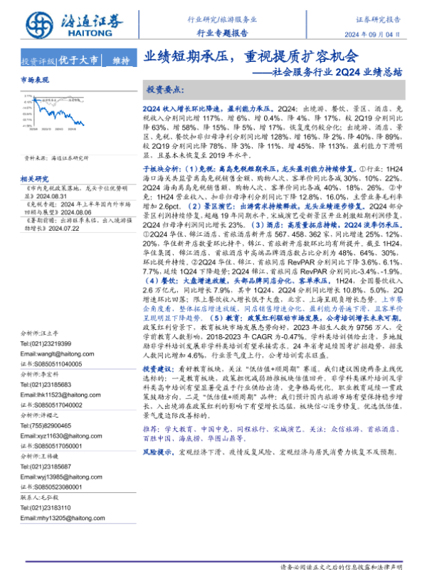 【海通证券】【20240904】社会服务行业2Q24业绩总结:业绩短期承压,重视提质扩容机会-12页