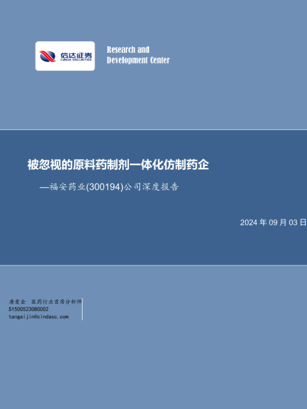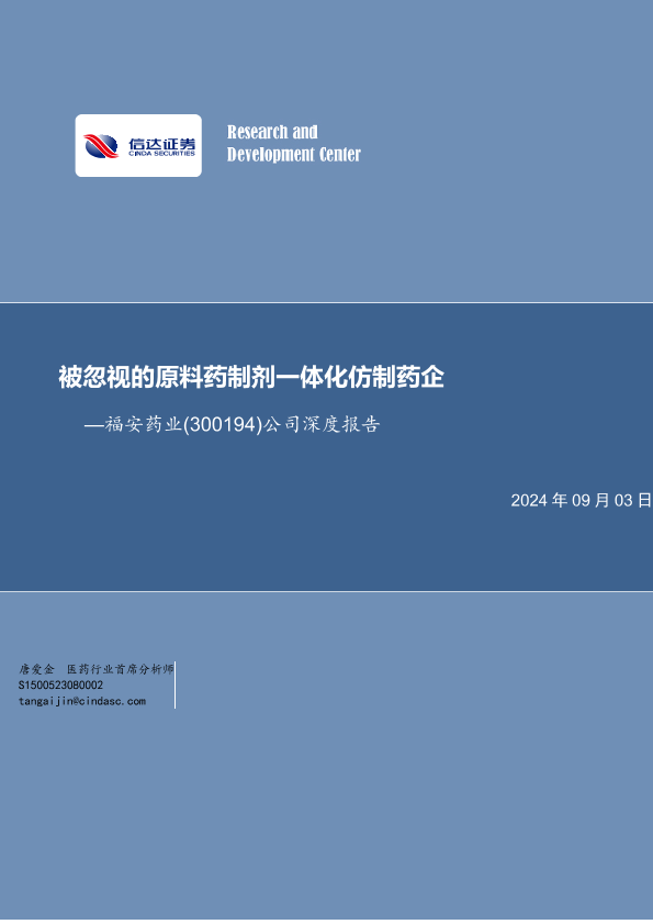 【信达证券】【20240903】福安药业(300194)公司深度报告:被忽视的原料药制剂一体化仿制药企-25页