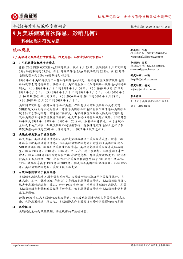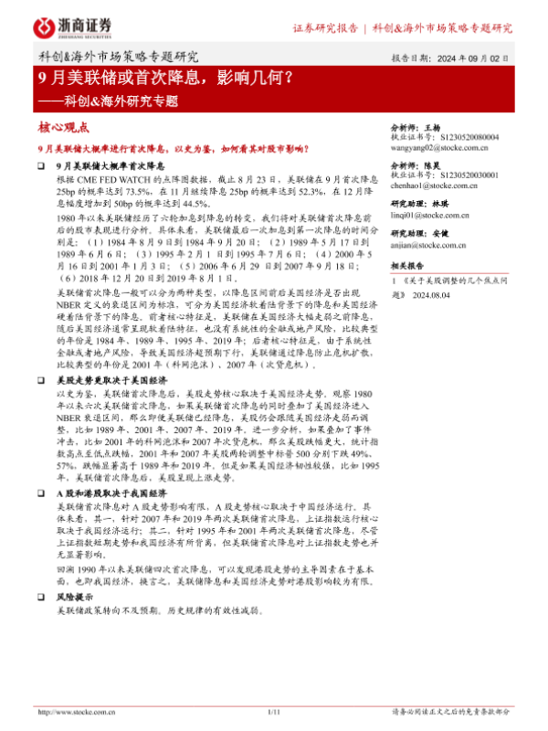 【浙商证券】【20240902】科创&海外市场策略研究专题:9月美联储或首次降息,影响几何?-11页