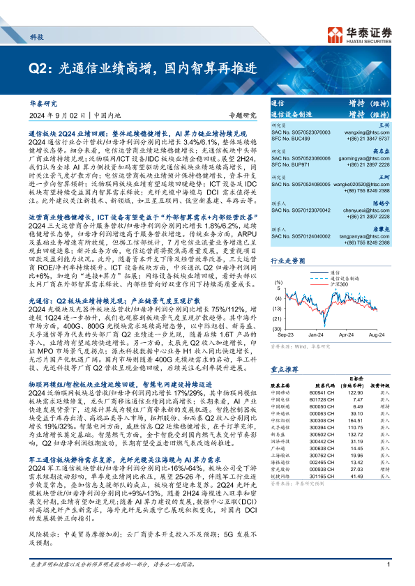 【华泰证券】【20240902】科技行业专题研究-Q2:光通信业绩高增,国内智算再推进-17页