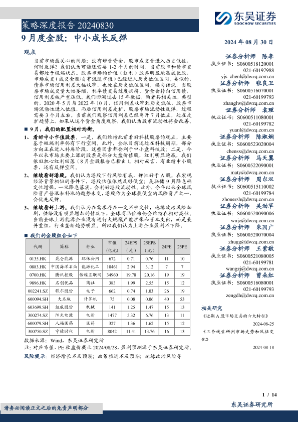 【东吴证券】【20240830】策略深度报告:9月度金股,中小成长反弹-14页