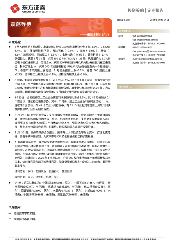【东方证券】【20240904】策略月报:震荡等待-13页