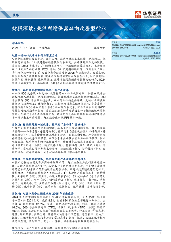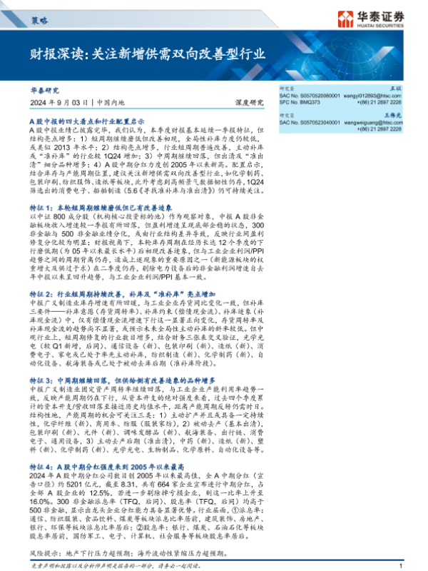 【华泰证券】【20240903】策略深度研究-财报深读:关注新增供需双向改善型行业-29页