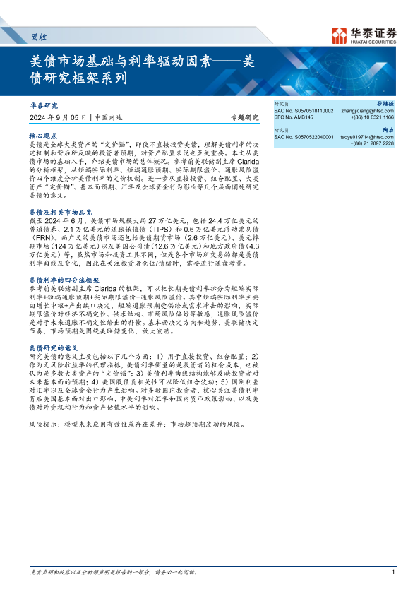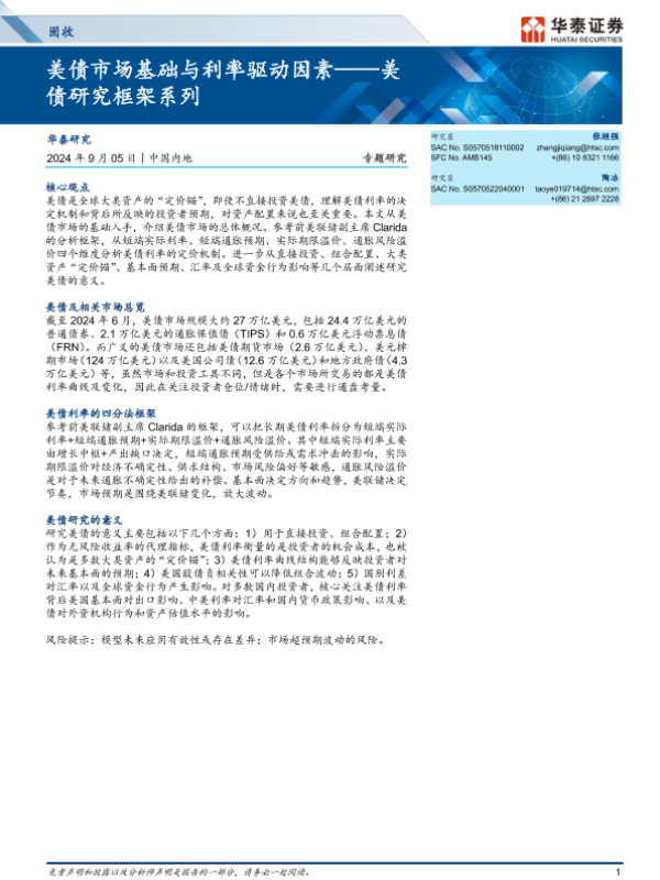 【华泰证券】【20240905】美债研究框架系列:美债市场基础与利率驱动因素-15页