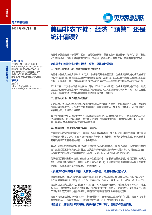 【申万宏源】【20240831】美国非农下修:经济“预警”还是统计偏误?-27页