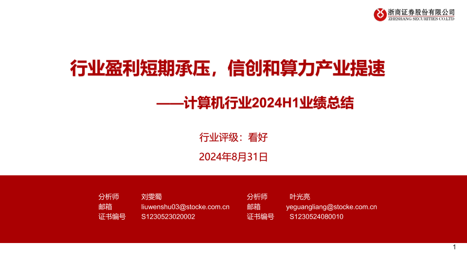 【浙商证券】【20240831】计算机行业2024H1业绩总结:行业盈利短期承压,信创和算力产业提速-20页