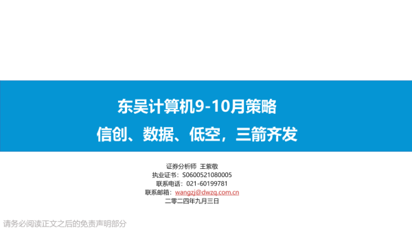 【东吴证券】【20240903】计算机行业9-10月策略:信创、数据、低空,三箭齐发-25页