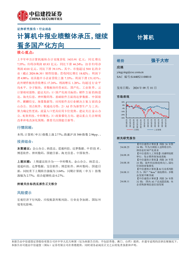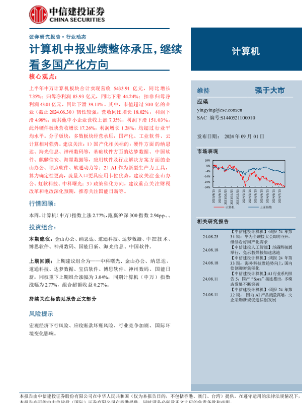 【中信建投证券】【20240901】计算机中报业绩整体承压,继续看多国产化方向-12页