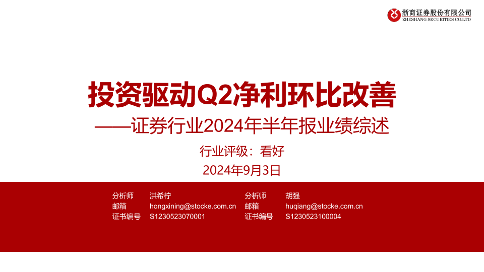 【浙商证券】【20240903】证券行业2024年半年报业绩综述:投资驱动Q2净利环比改善-25页
