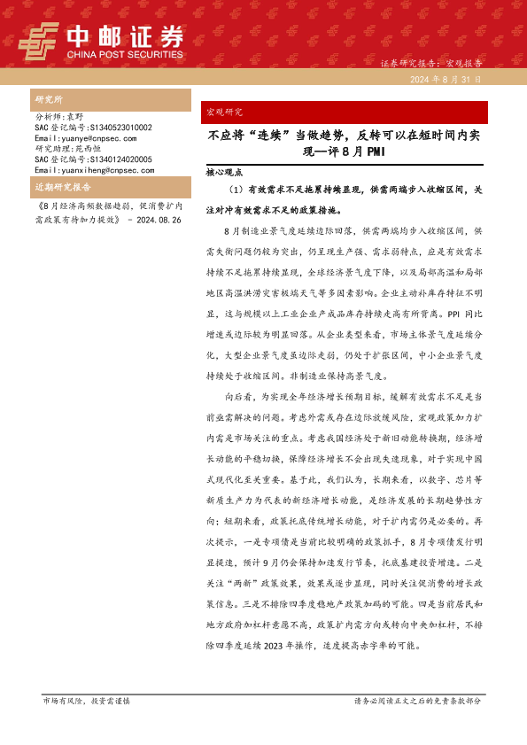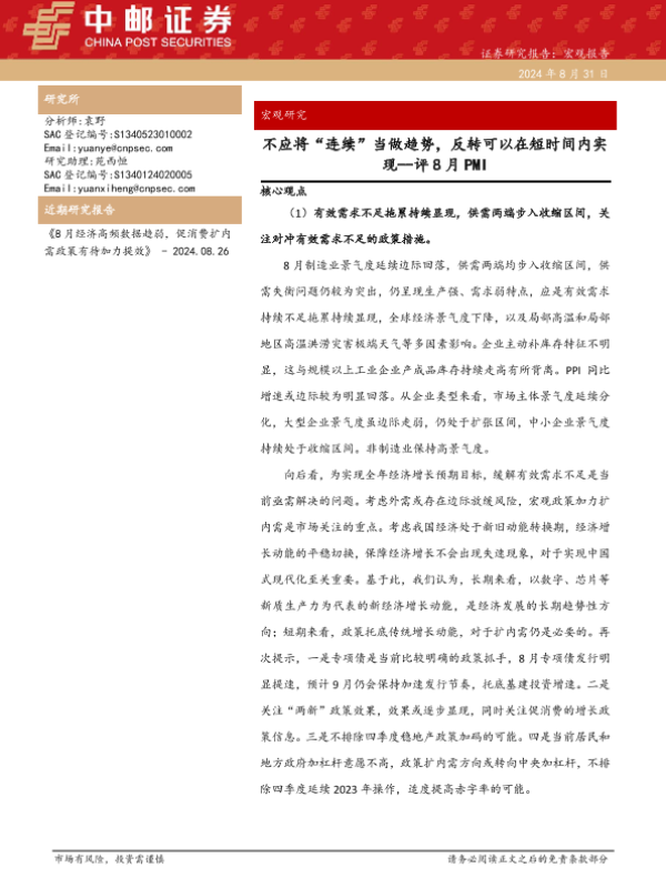 【中邮证券】【20240831】评8月PMI:不应将“连续”当做趋势,反转可以在短时间内实现-34页