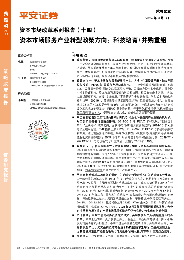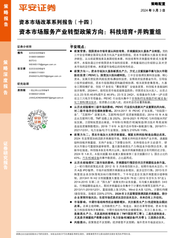 【平安证券】【20240903】资本市场改革系列报告(十四):资本市场服务产业转型政策方向,科技培育+并购重组-18页
