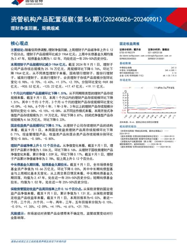 【国信证券】【20240904】资管机构产品配置观察(第56期):理财净值回撤,规模缩减-14页