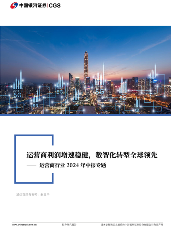 【银河证券】【20240825】运营商行业2024年中报专题:运营商利润增速稳健,数智化转型全球领先-23页