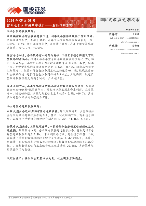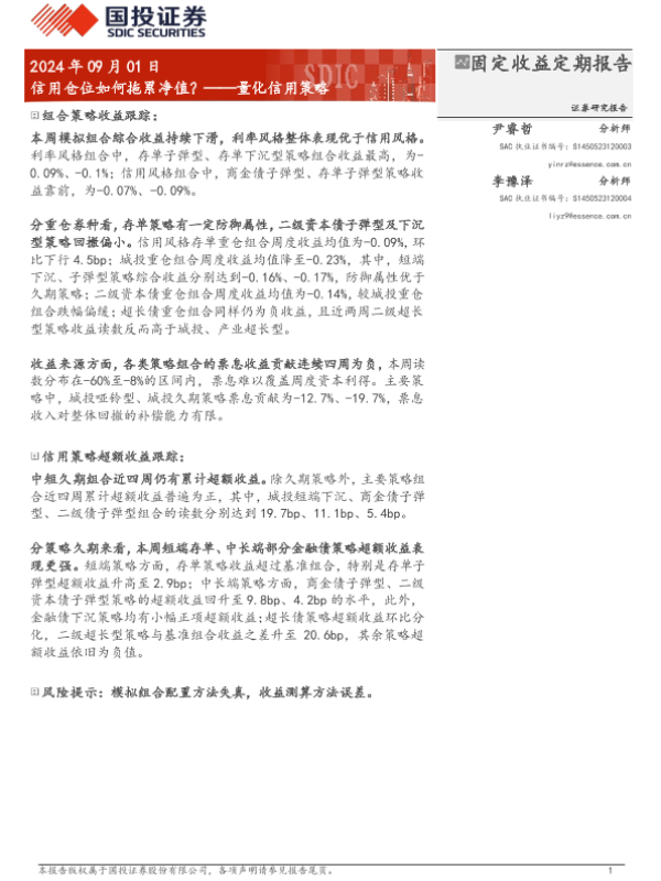 【国投证券】【20240901】量化信用策略:信用仓位如何拖累净值?-11页