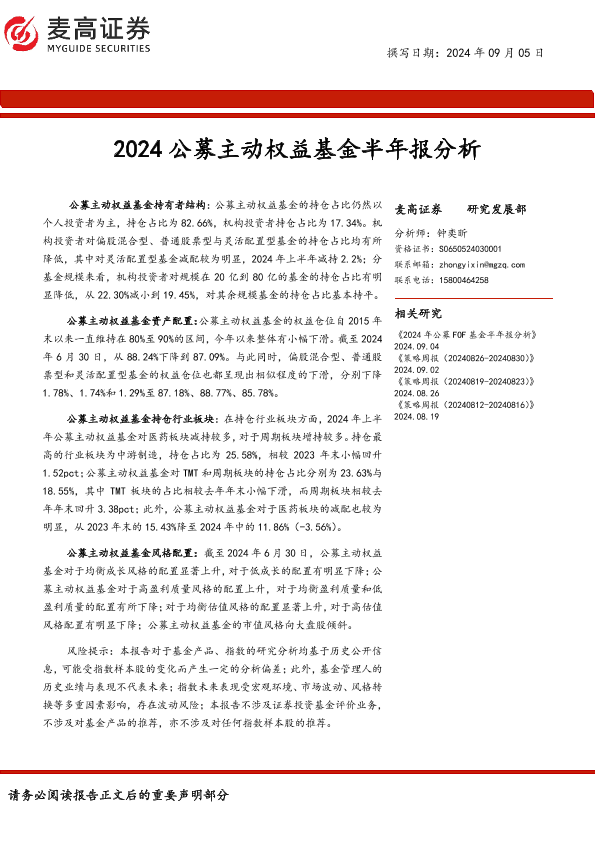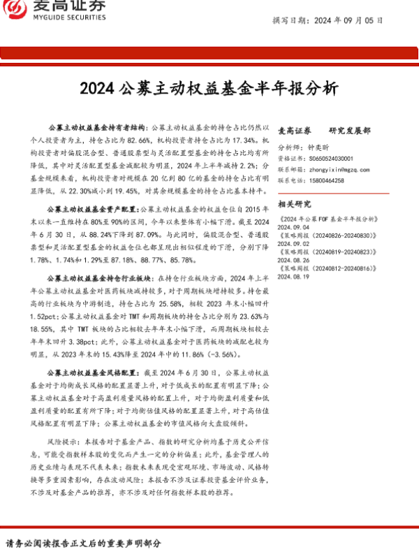 【麦高证券】【20240905】2024公募主动权益基金半年报分析-18页
