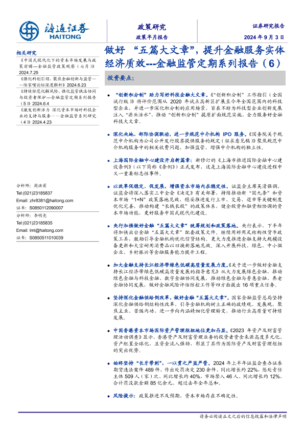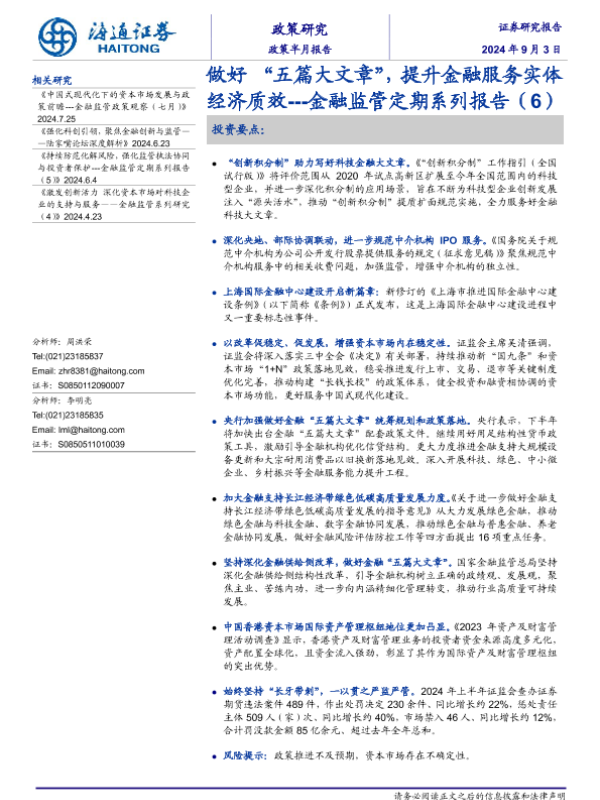 【海通证券】【20240903】做好“五篇大文章”,提升金融服务实体经济质效---金融监管定期系列报告(6)-24页