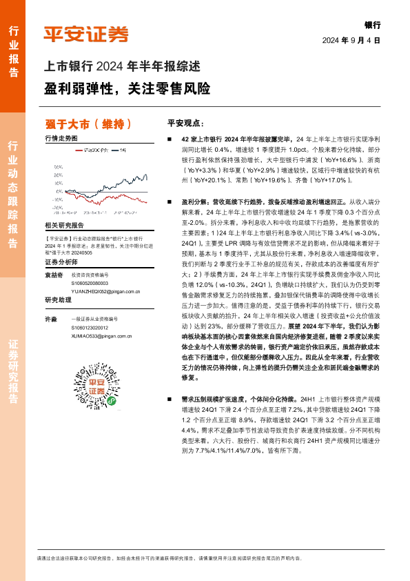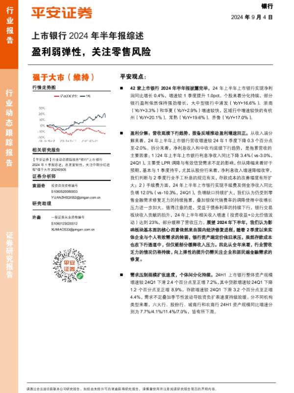 【平安证券】【20240904】银行业上市银行2024年半年报综述:盈利弱弹性,关注零售风险-21页