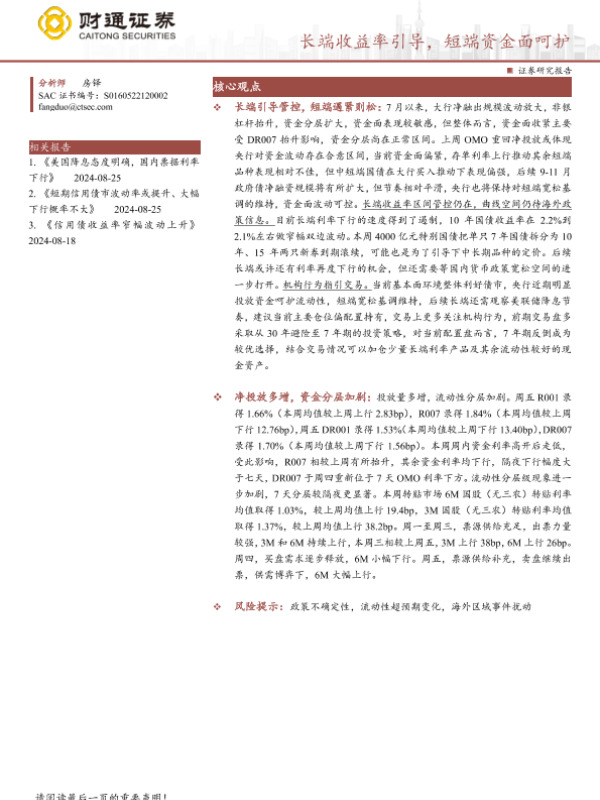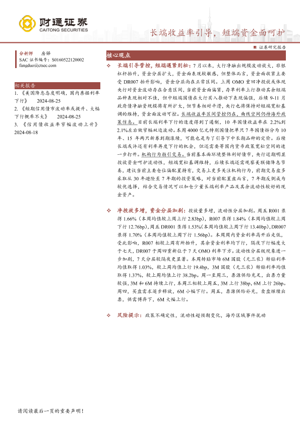 【财通证券】【20240901】长端收益率引导,短端资金面呵护-15页