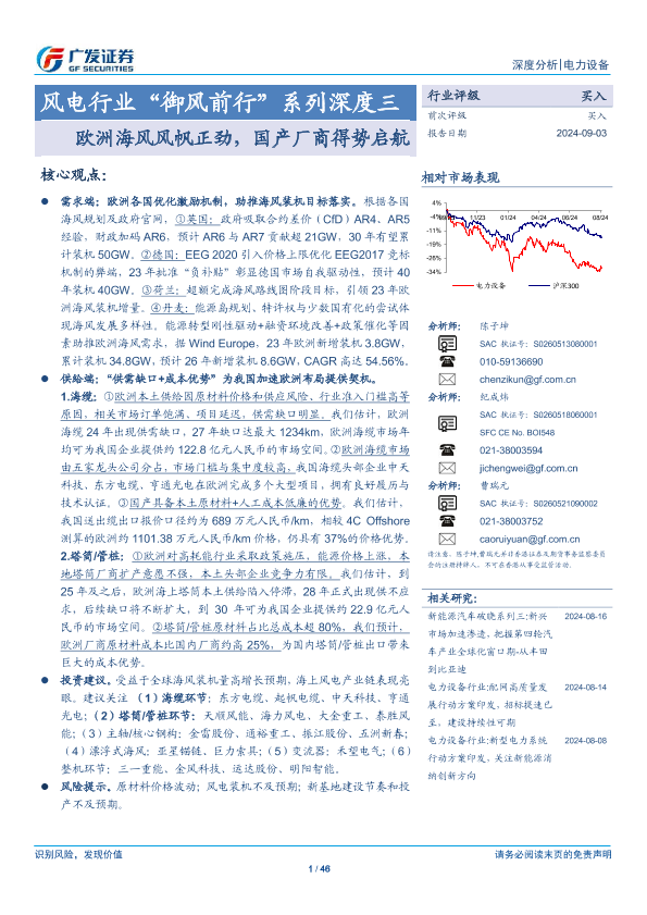 【广发证券】【20240903】风电行业“御风前行”系列深度三:欧洲海风风帆正劲,国产厂商得势启航-46页