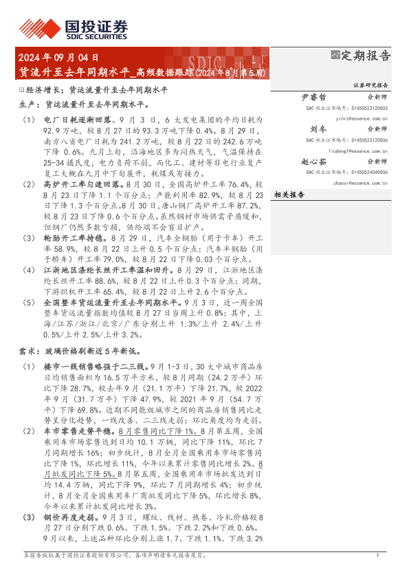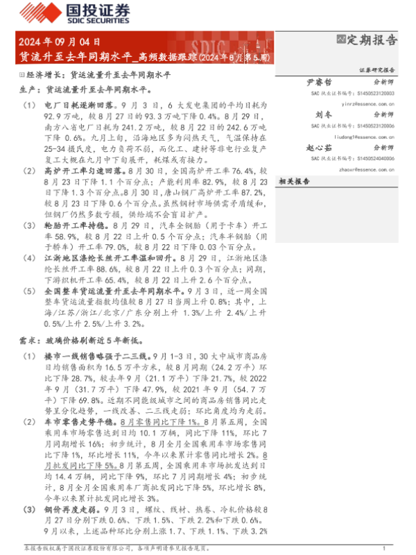 【国投证券】【20240904】高频数据跟踪(2024年8月第5周):货流升至去年同期水平-15页