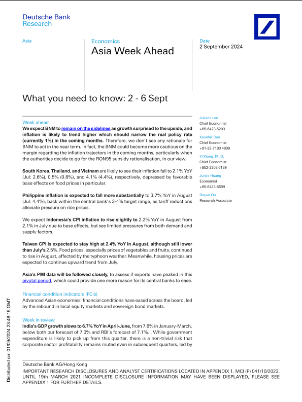【Deutsche Bank】【20240901】Asia Week Ahead What you need to know 2 - 6 Sept-10页