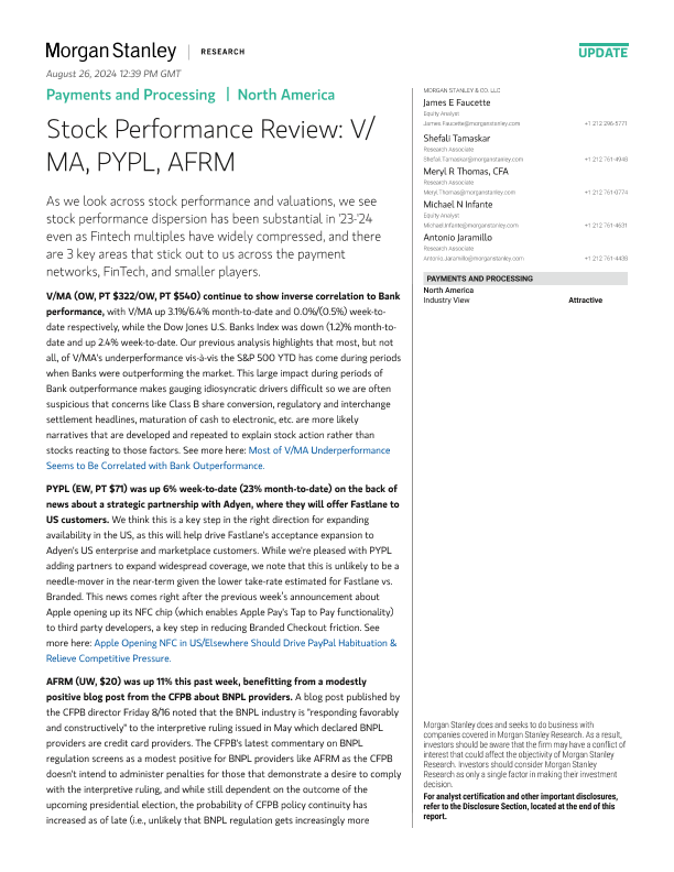 【Morgan Stanley】【20240101】Morgan Stanley-Payments and Processing Stock Performance Review-19页