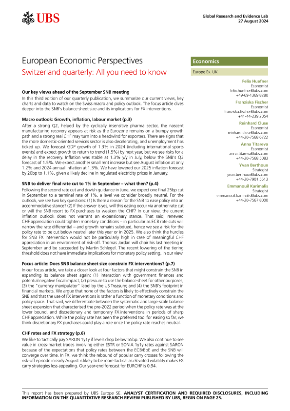 【UBS Europe SE】【20240827】UBS Economics-European Economic Perspectives _Switzerland quarterly All you need to know-30页