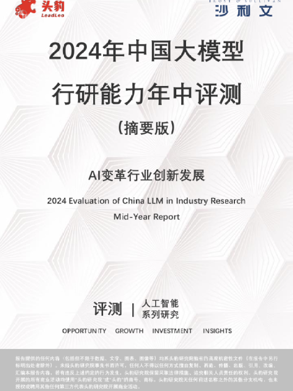 【头豹研究院】【202408】2024年中国大模型行研能力年中评测-18页
