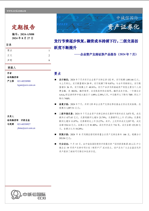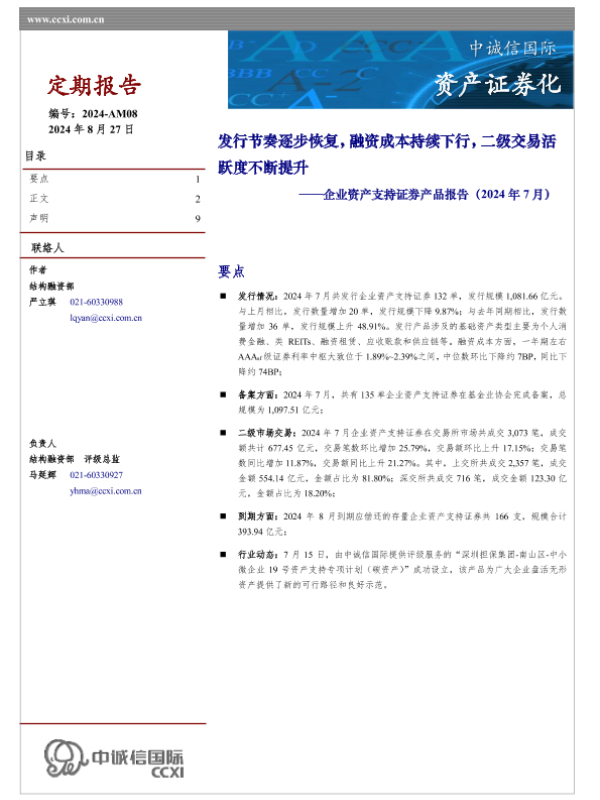 【中诚信国际】【20240827】企业资产支持证券产品报告(2024年7月)-9页