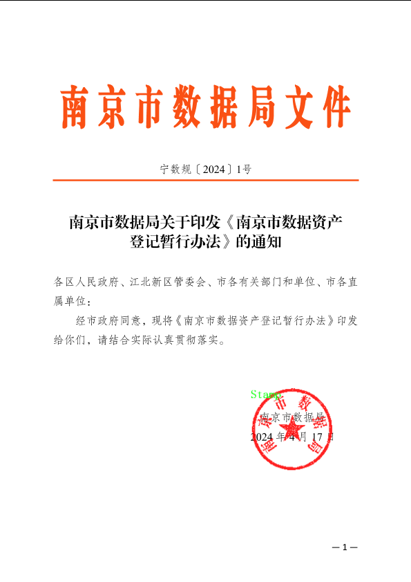 【南京市数据局】【20240417】南京市数据资产登记暂行办法-14页