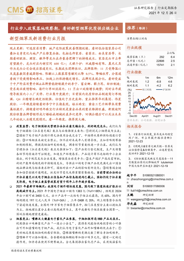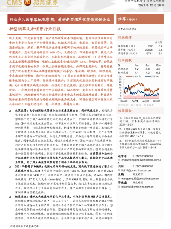【海通证券】【20211226】新型烟草及新消费行业月报:行业步入政策落地观察期,看好新型烟草优质供应链企业-16页