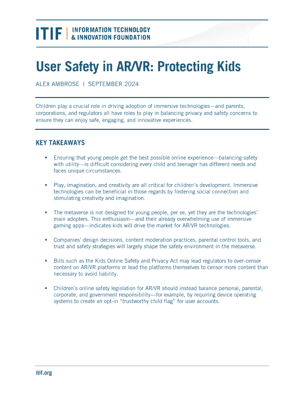 【Information Technology & Innovation Foundation】【202409】User Safety in AR/VR Protecting Kids-20页