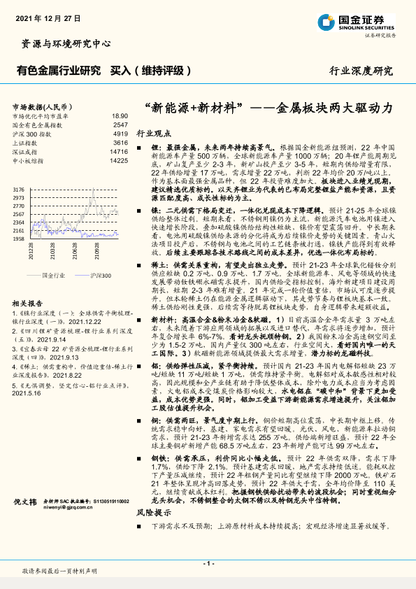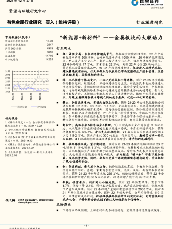 【国金证券】【20211227】有色金属行业深度研究:金属板块两大驱动力,“新能源+新材料”-41页
