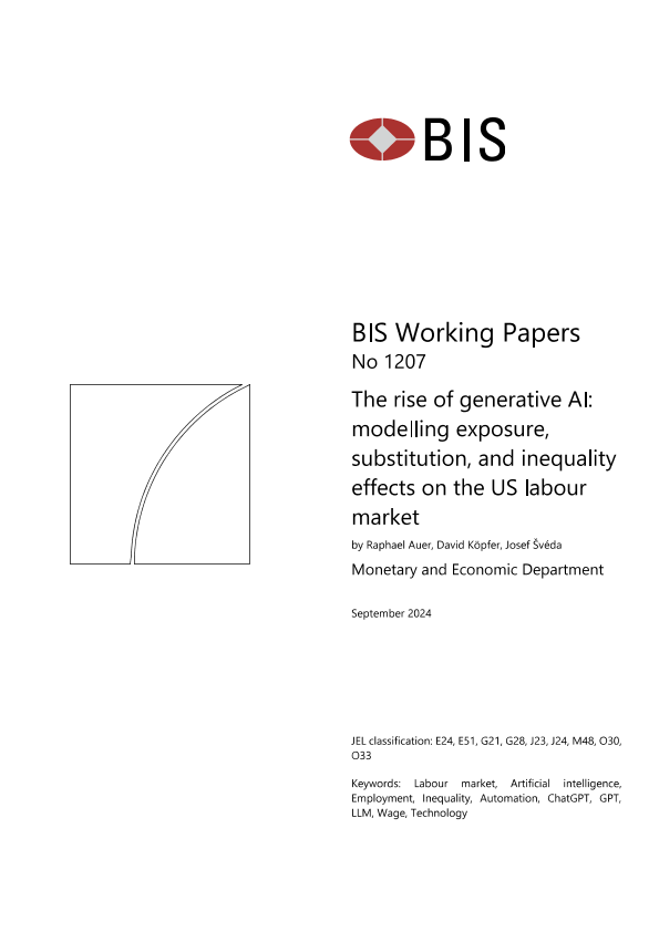 【国际清算银行】【202409】生成性人工智能的兴起:对美国劳动力市场的暴露、替代和不平等效应进行建模-39页