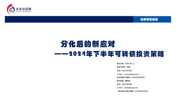 【太平洋证券】【20240911】2024年下半年可转债投资策略:分化后的新应对-20页
