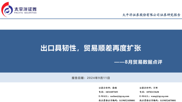 【太平洋证券】【20240911】8月贸易数据点评:出口具韧性,贸易顺差再度扩张-14页