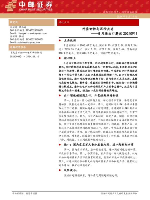 【中邮证券】【20240911】8月进出口解读:外需韧性与风险共存-12页