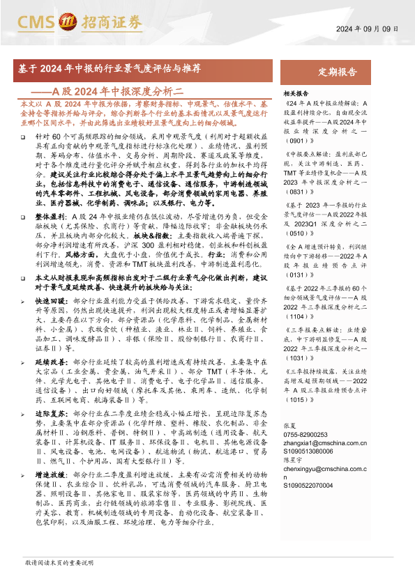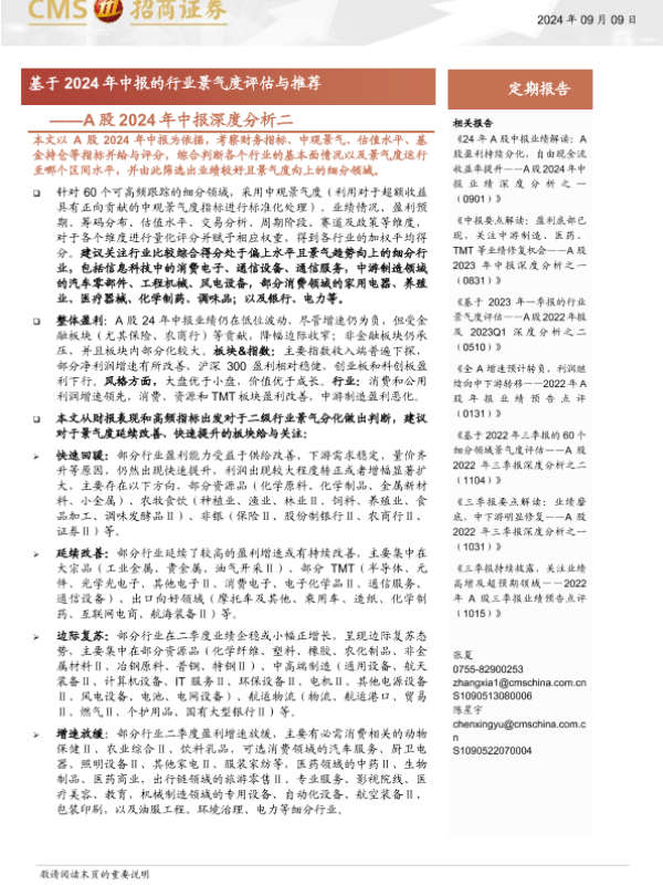 【海通证券】【20240909】A股2024年中报深度分析二:基于2024年中报的行业景气度评估与推荐-25页
