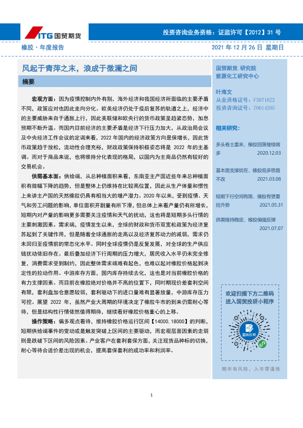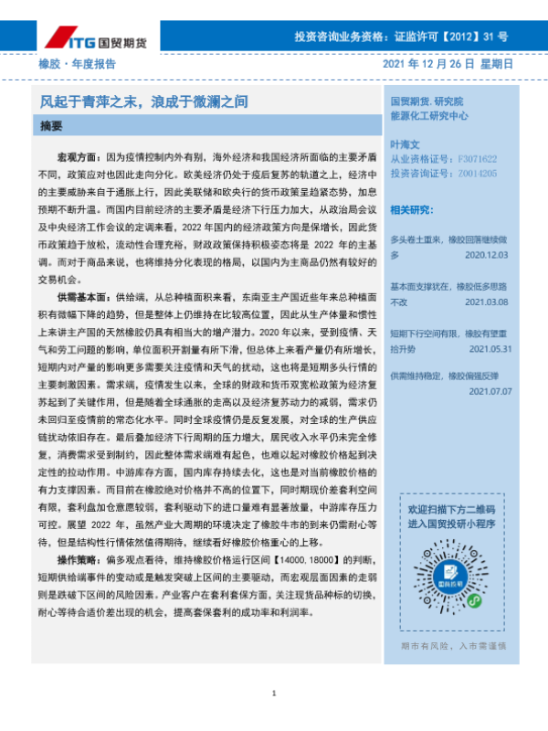 【国贸期货】【20211226】橡胶·年度报告:风起于青萍之末,浪成于微澜之间-25页