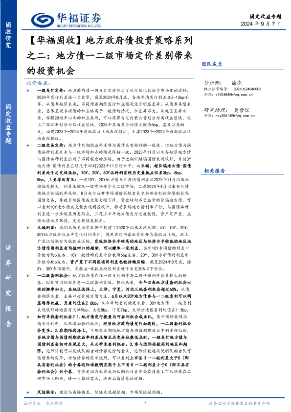 【华福证券】【20240907】地方政府债投资策略系列之二:地方债一二级市场定价差别带来的投资机会-16页