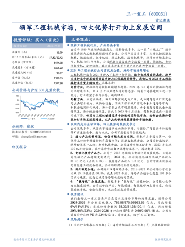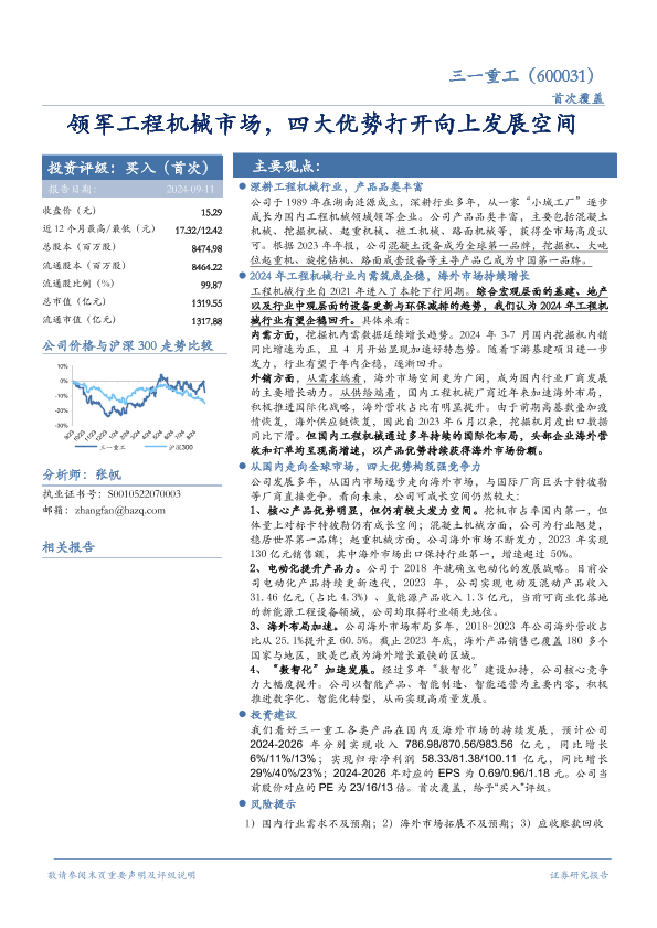 【华安证券】【20240911】三一重工(600031)领军工程机械市场,四大优势打开向上发展空间-32页